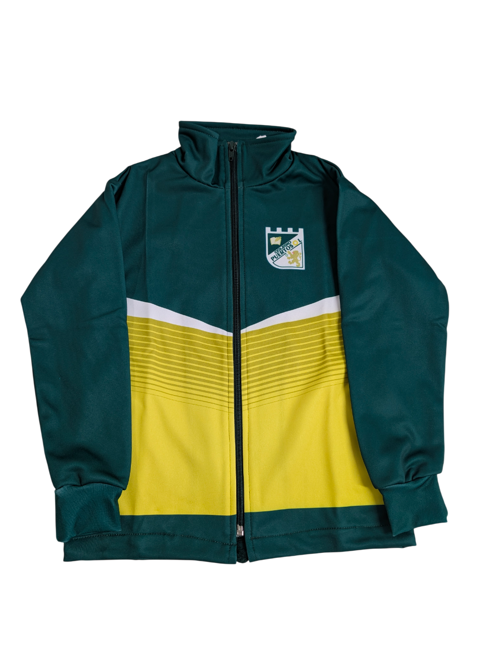 Chaqueta de chándal verde con escudo.